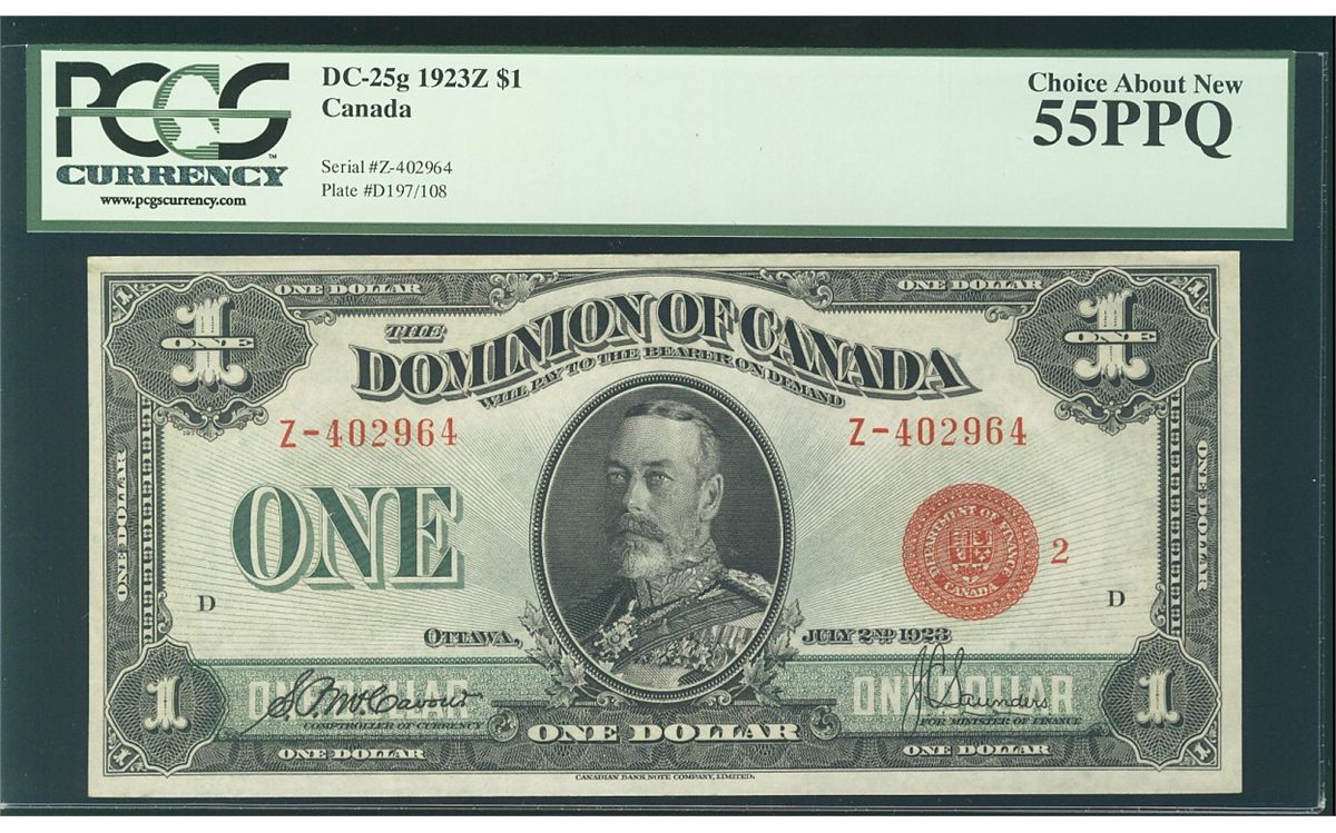 1923 $1 DC-25g #Z-402964 PCGS AU55PPQ. Bright and choice.