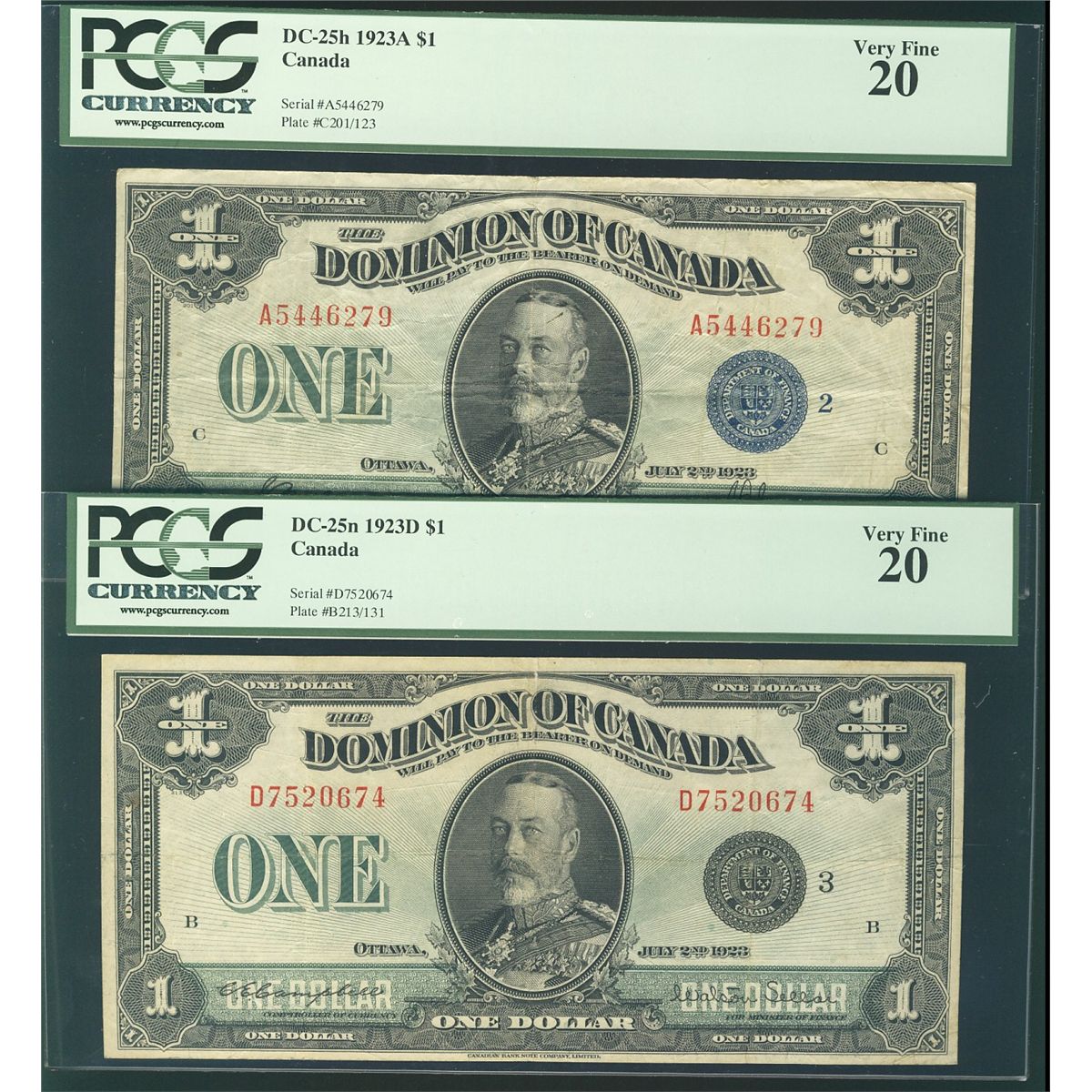 1923 $1 DC-25h & 25n PCGS VF20. Lot of 2 notes.
