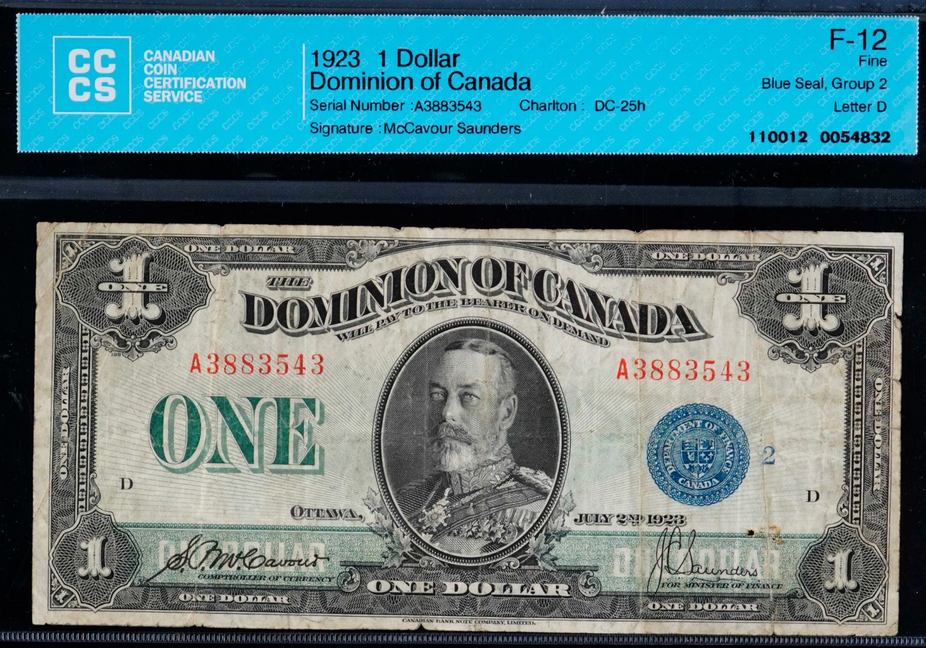 1923 $1 DC-25h #A3883543 "BLUE SEAL" CCCS F12