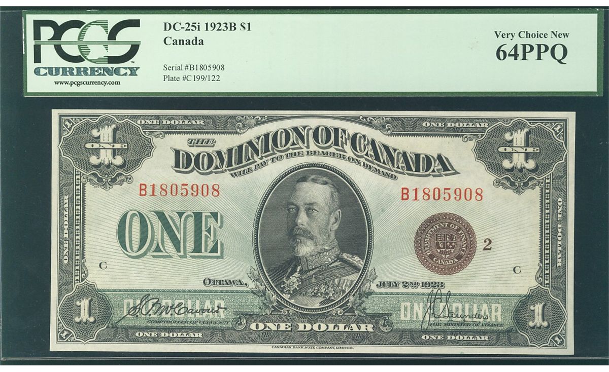 1923 $1 DC-25i B1805908 PCGS UNC64PPQ A near Gem example. Flashy.