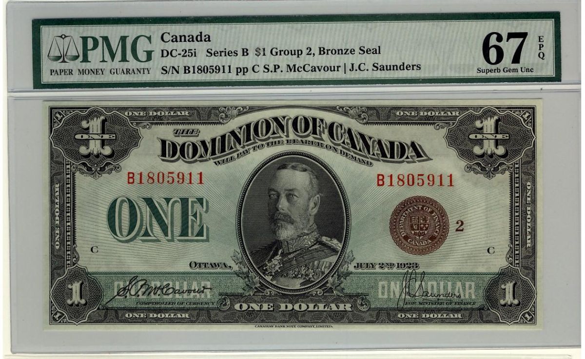 1923 $1 DC-25i #B1805911, PMG Superb Gem UNC 67 EPQ. A perfect note! VERY RARE!