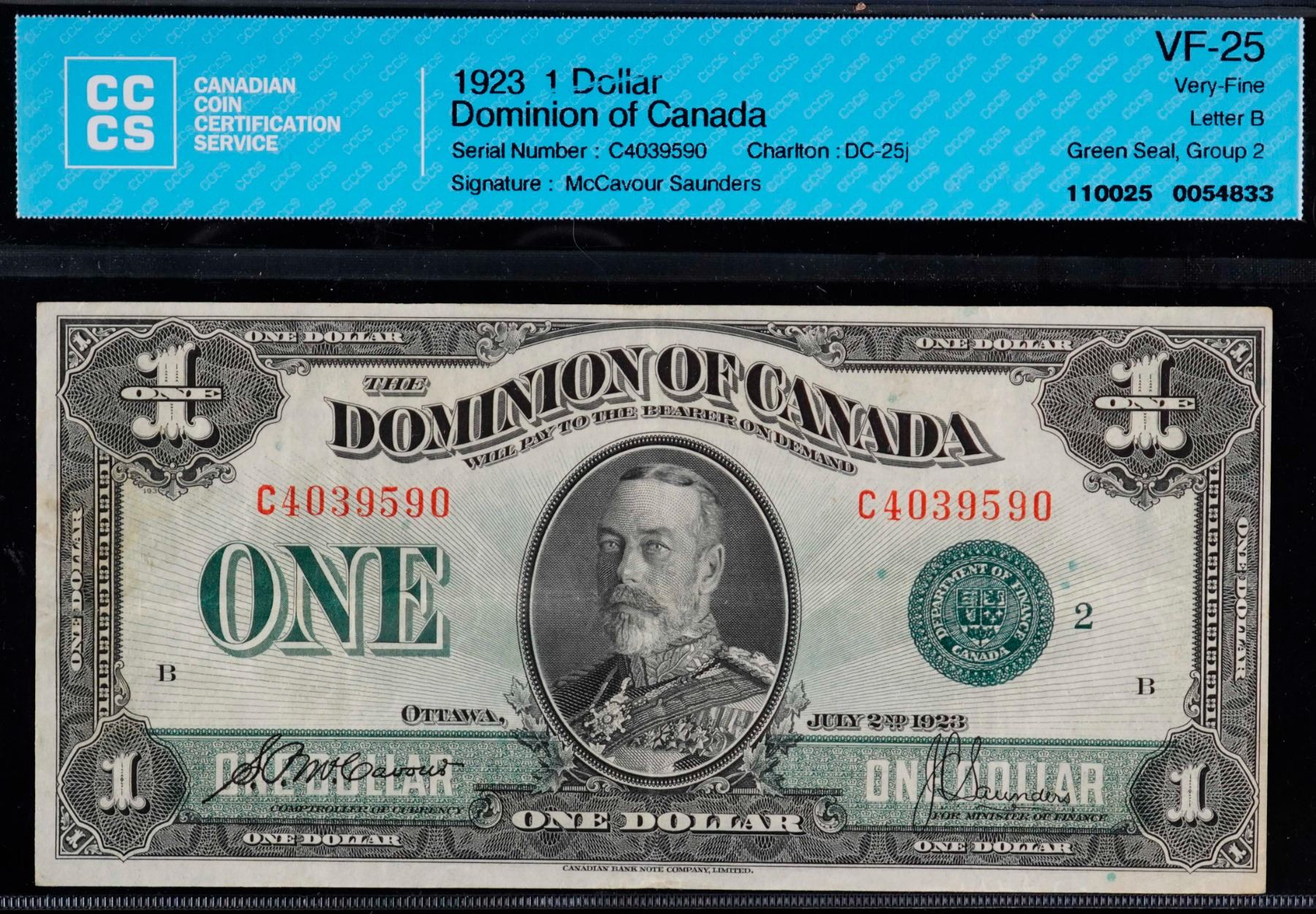 1923 $1 DC-25j #C4039590 CCCS VF25 A bright example.