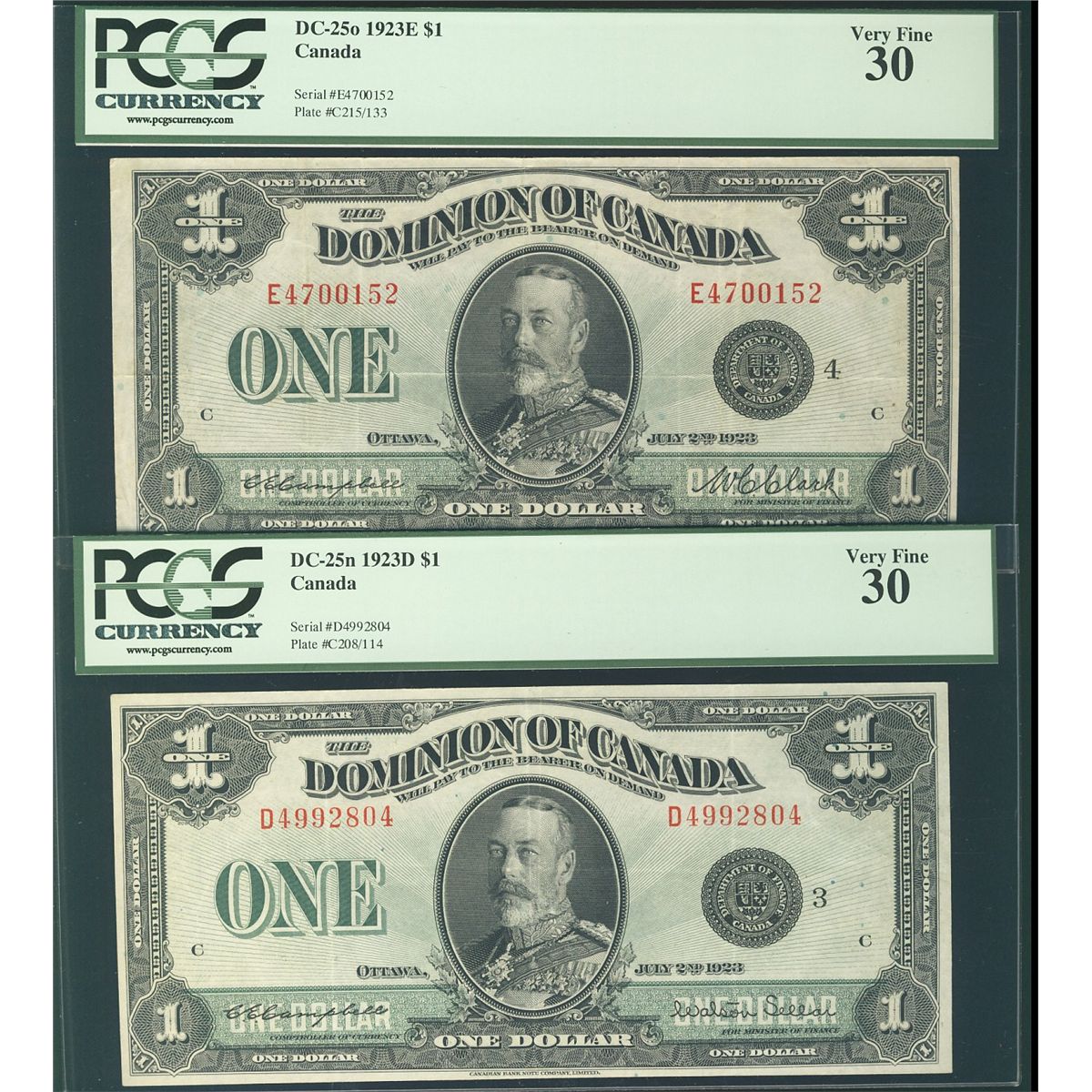 1923 $1 DC-25n & 25o PCGS VF30. Lot of 2 notes.