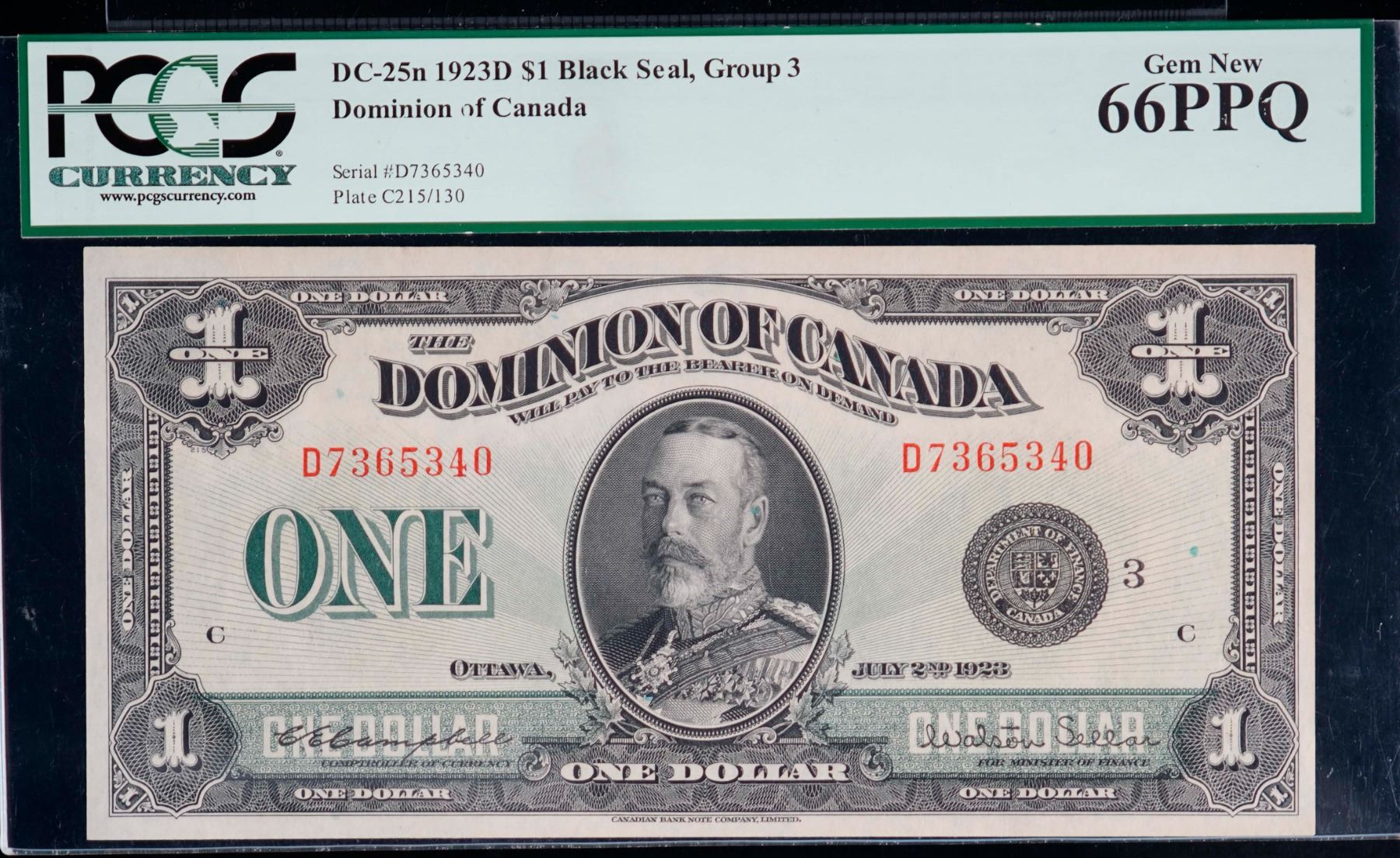 1923 $1 DC-25n #D7365340, PCGS Superb Gem Uncirculated-66PPQ. This is a pristine issue with great eye appeal, good margins and superb embossing.