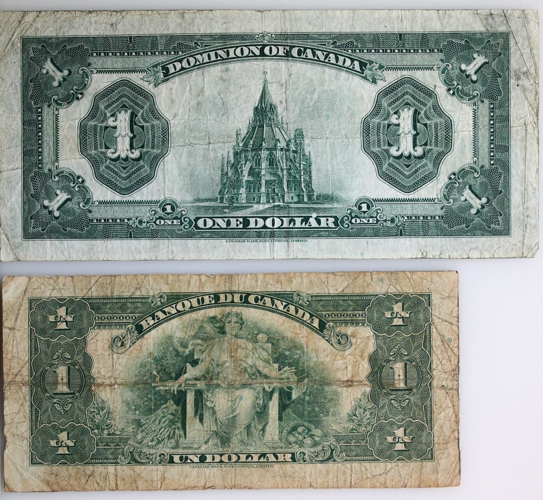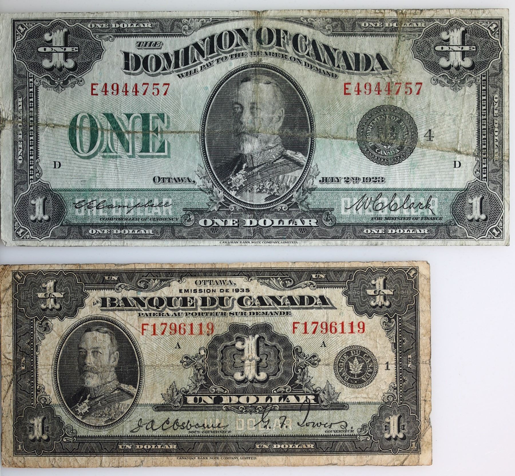 1923 $1 DC-25o & 1935 $1 BC-2. Lot of 2 notes Fine average grade.