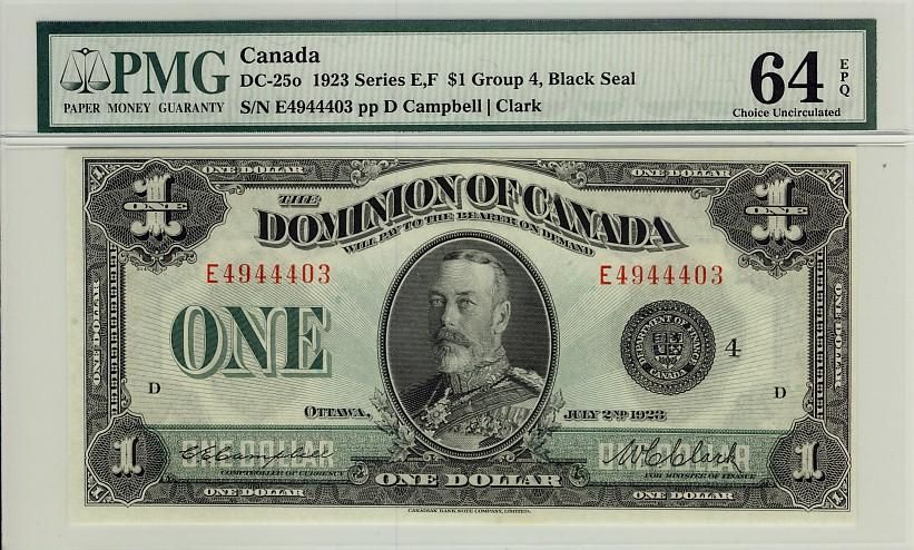1923 $1 DC-25o E4944403 PMG UNC64 EPQ. Vibrant colours with great embossing.
