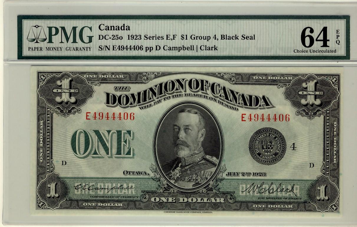 1923 $1 DC-25o E4944406 PMG UNC64 EPQ. Very flashy and attractive example.