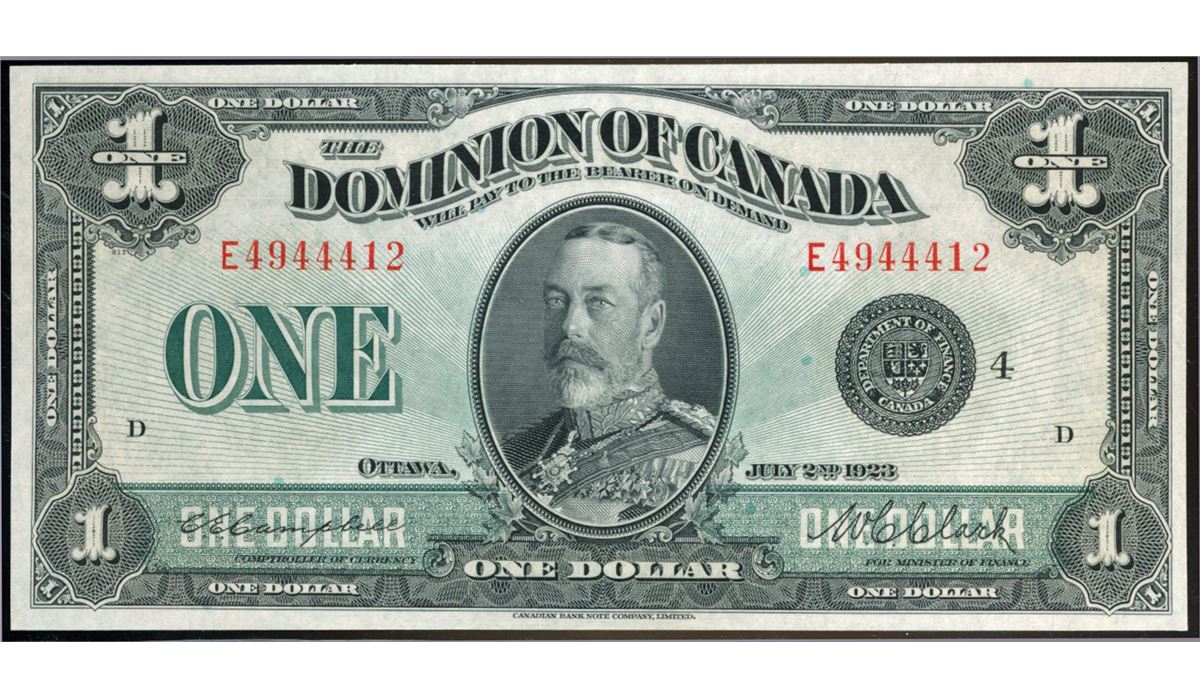 1923 $1 DC-25o #E4944412, PCGS Gem UNC65PPQ.