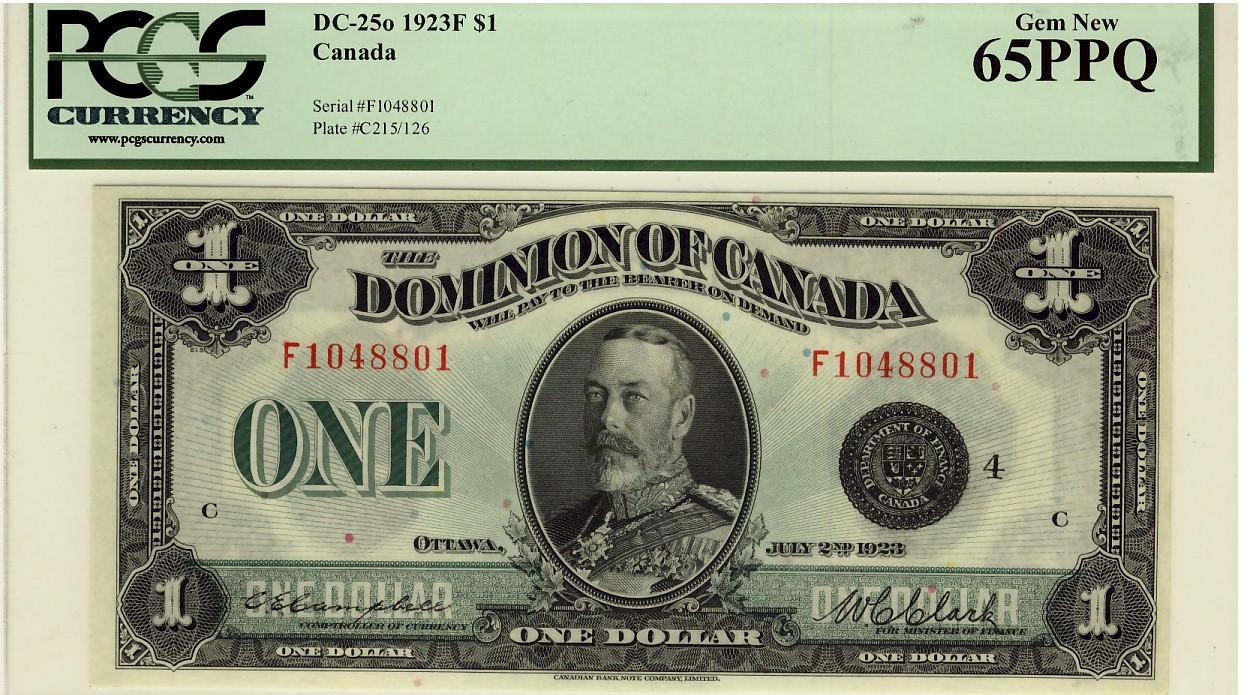 1923 $1 DC-25o #F1048801 PCGS UNC65PPQ, Rare F letter in GEM'