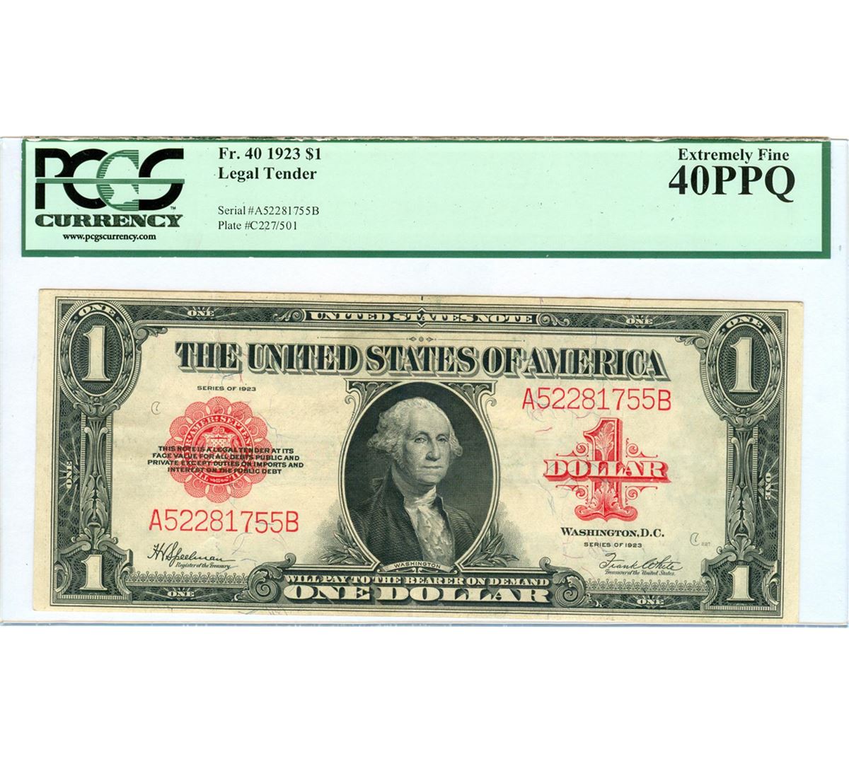 One 1923 $1 FR 40 PCGS Graded Extremely Fine Legal Tender Note. PCGS Certified.