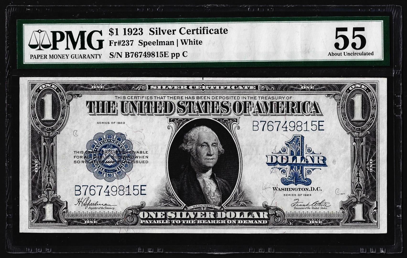 One 1923 $1 Horse Blanket Silver Certificate Note Fr.237 PMG About Uncirculated 55. PMG Certified.