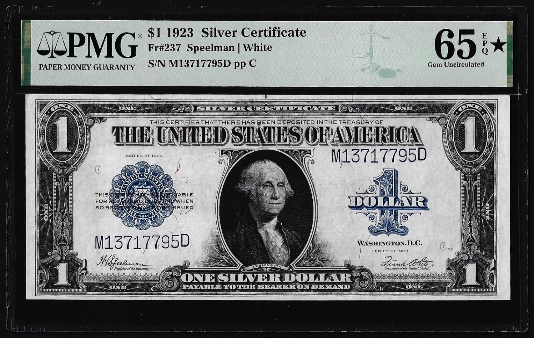 One 1923 $1 Horse Blanket Silver Certificate Note Fr.237 PMG Gem Uncirculated 65EPQ*. PMG Certified.