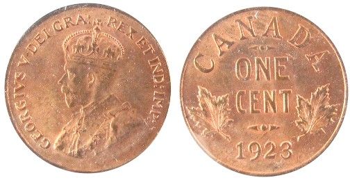 1923 1¢ ICCS MS64RD. Gem 95% red and lustrous key date. Well struck with exceptional surfaces and clean fields. The coin has full original lustre.