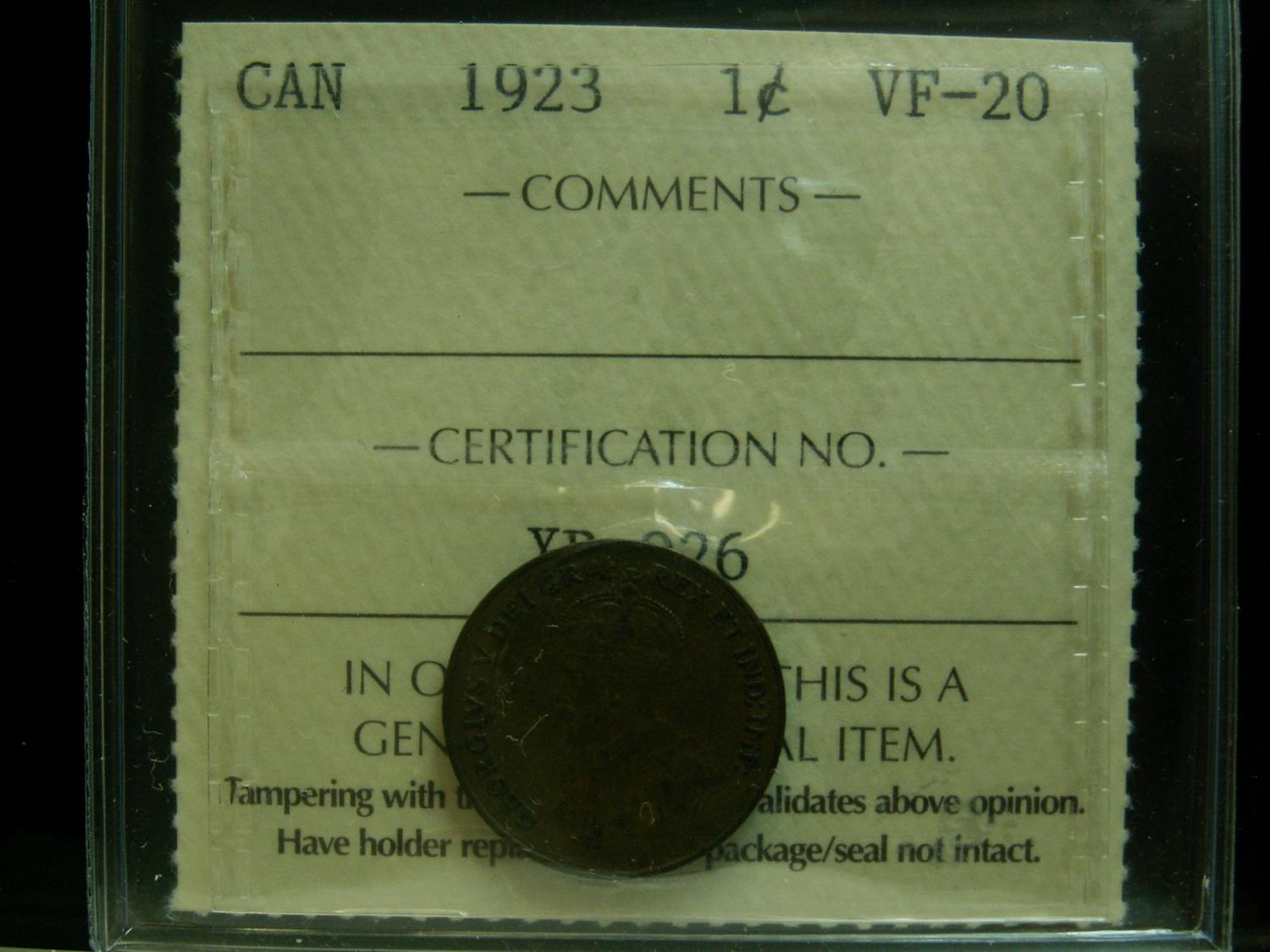 1923 1¢ ICCS VF20