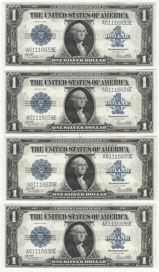 One 1923 $1 Large Silver Certificate Cut Sheet of (4) Gem New Notes.