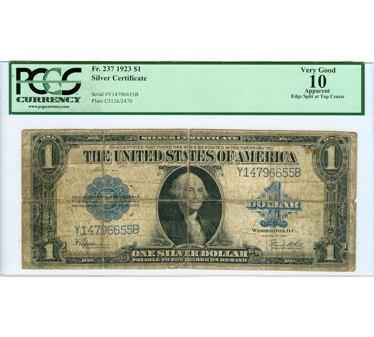 One 1923 $1 Large Silver Certificate PCGS Graded VG10. PCGS Certified.