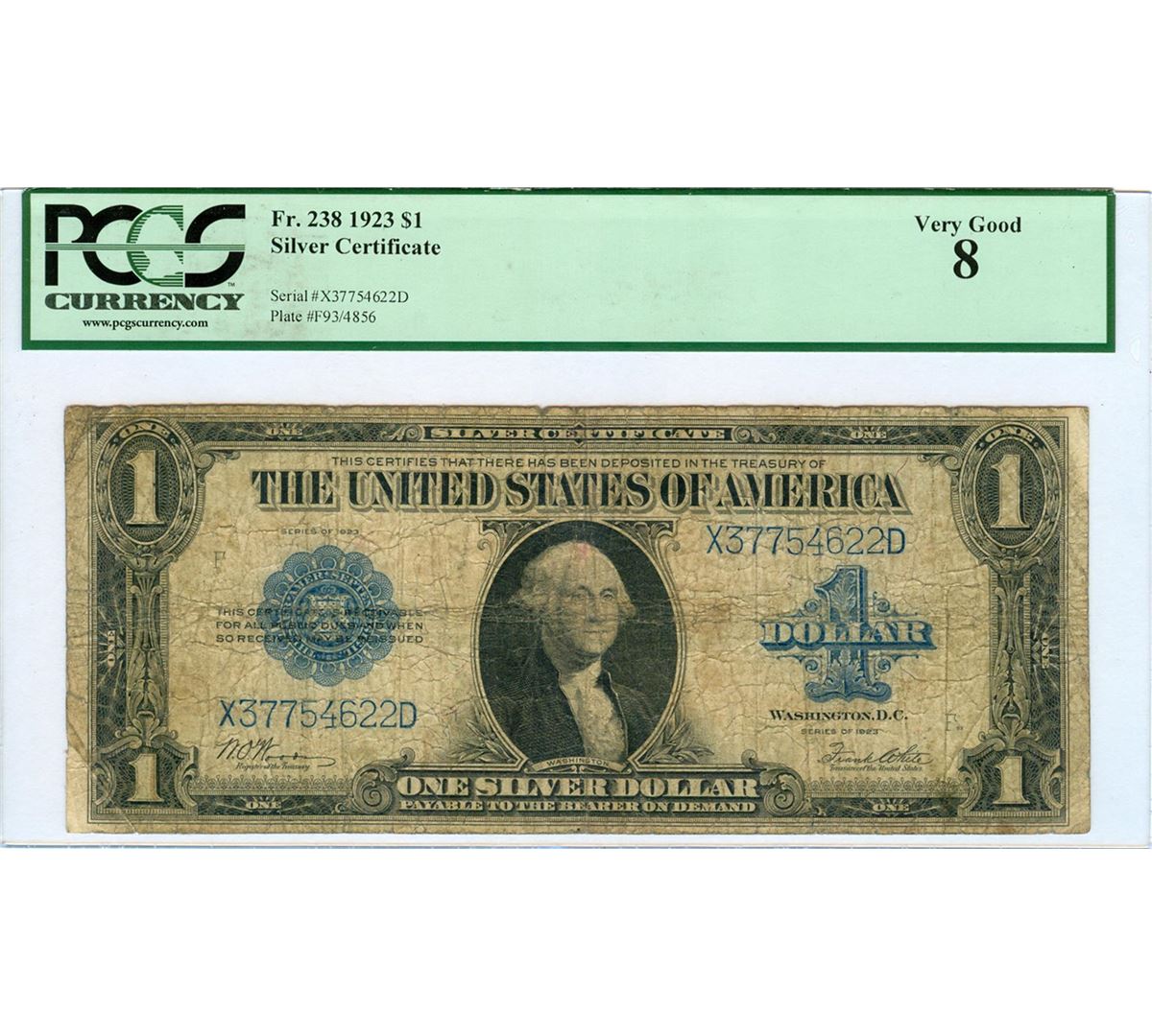 One 1923 $1 Large Silver Certificate PCGS Graded VG8. PCGS Certified.
