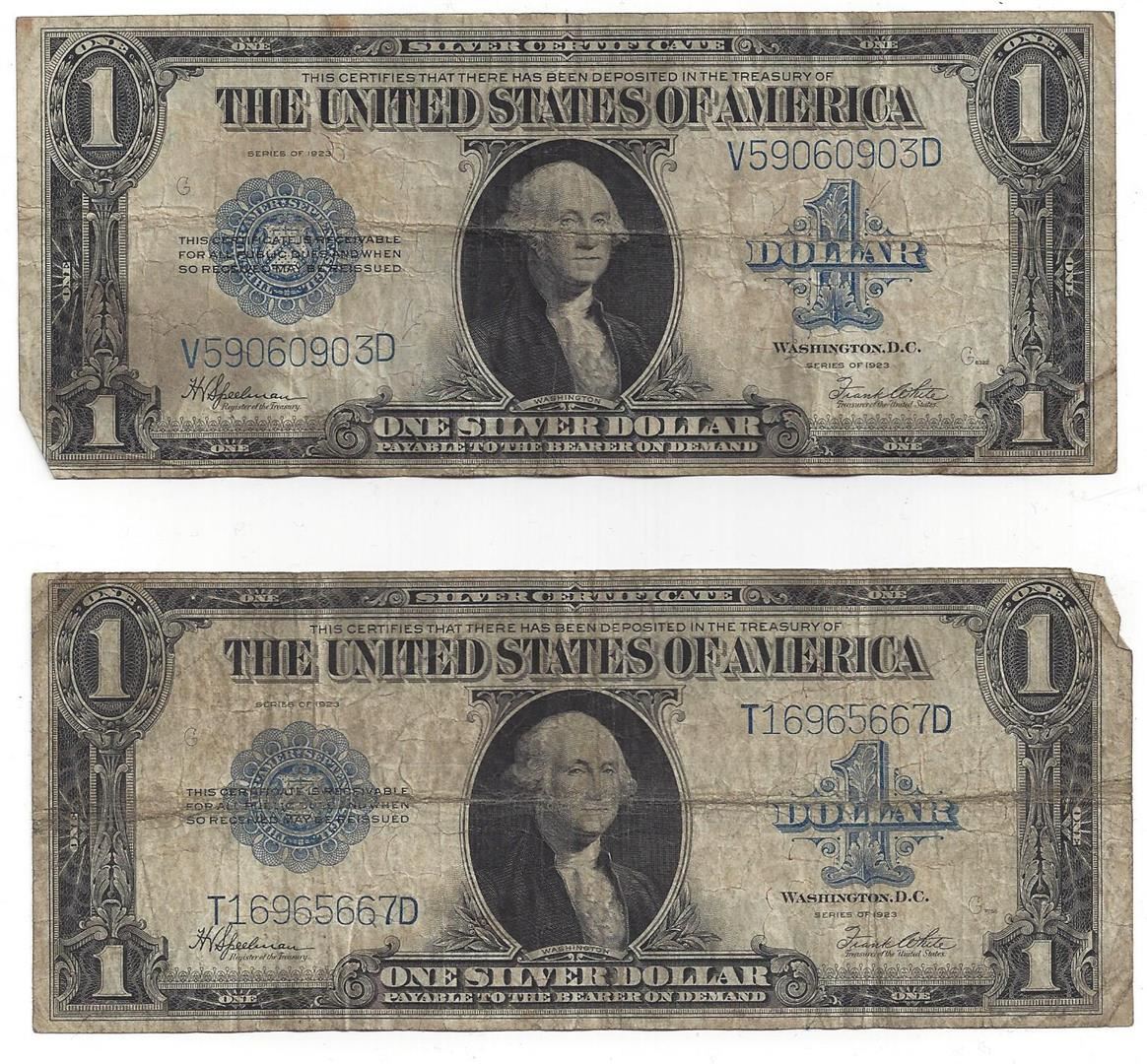 1923 $1 Large Silver Certificate Speelman / White Notes Lot of 2.