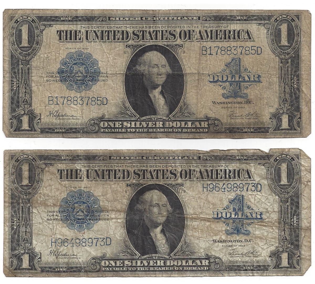 1923 $1 Large Silver Certificate Speelman / White Notes Lot of 2.
