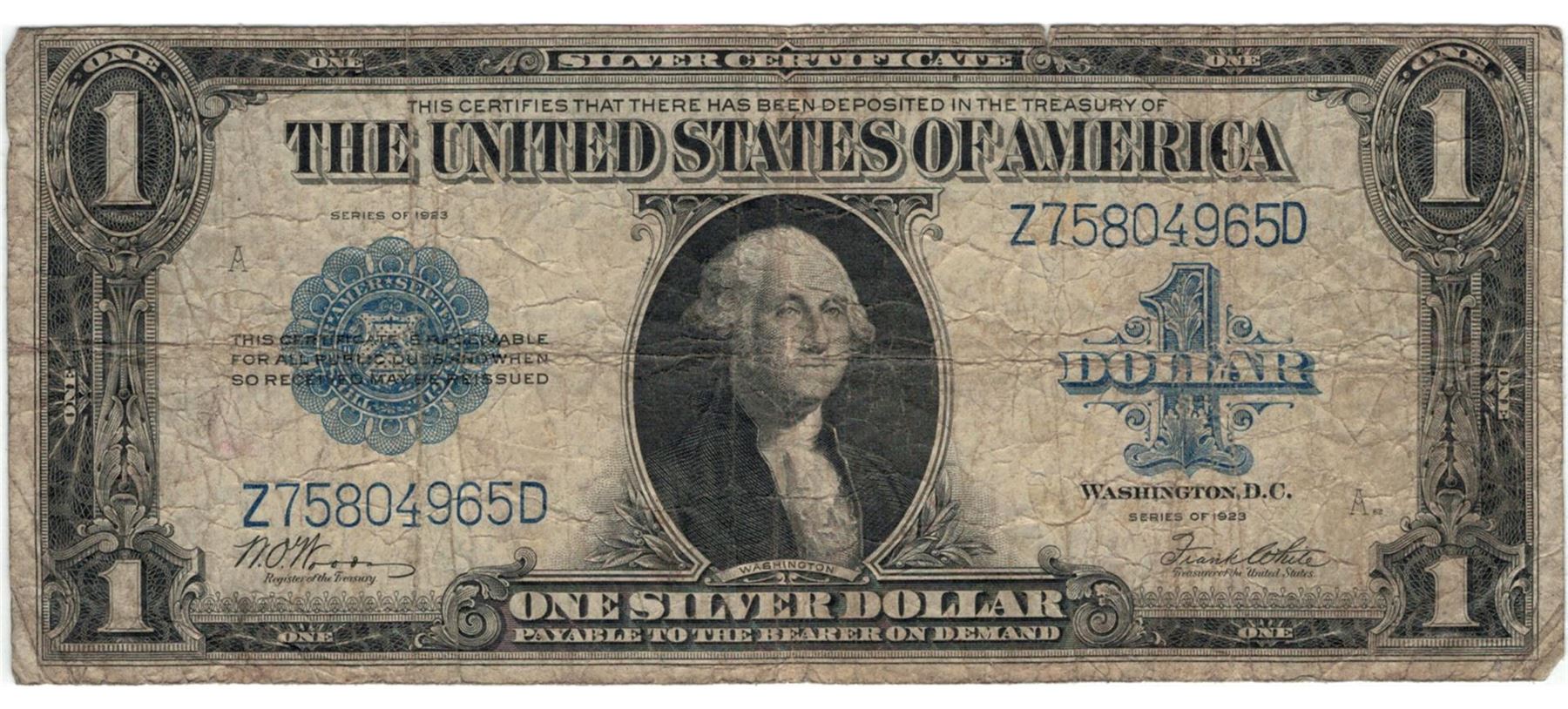 1923 $1 Large Size Silver Certificate Currency.