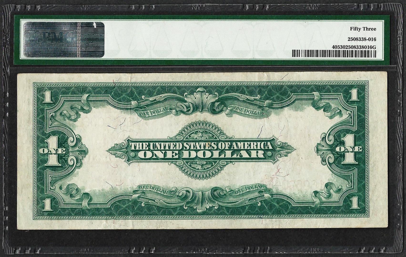One 1923 $1 Legal Tender Note Fr.40 PMG About Uncirculated 53. PMG Certified.