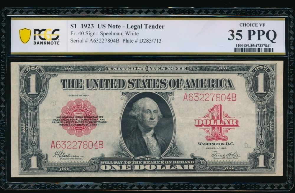 One 1923 $1 Legal Tender Note PCGS 35PPQ.