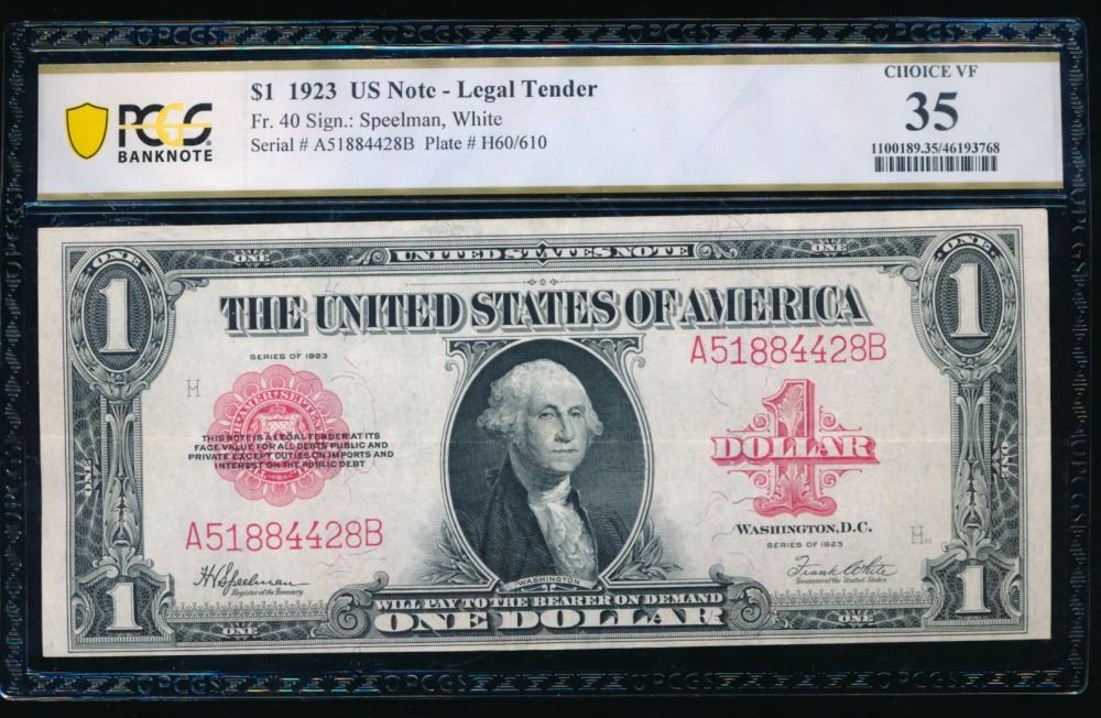 One 1923 $1 Legal Tender Note PCGS 35.