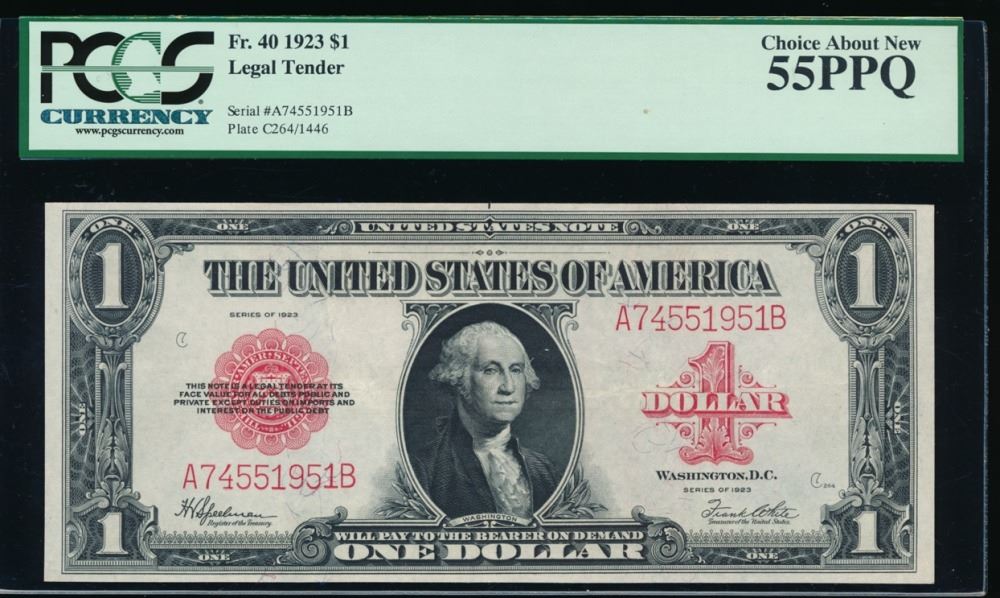 One 1923 $1 Legal Tender Note PCGS 55PPQ.
