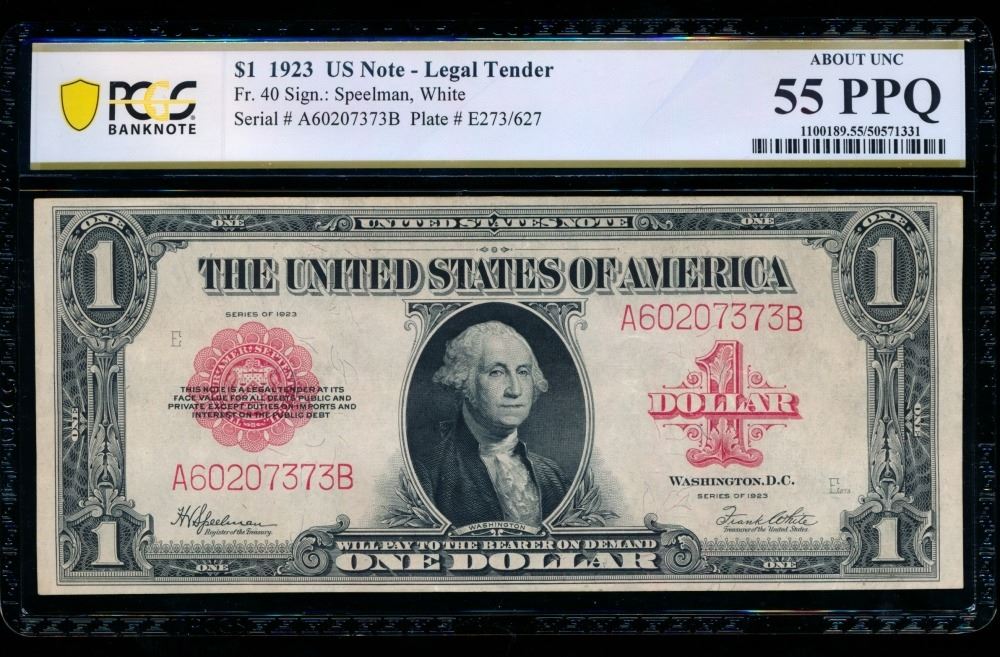 One 1923 $1 Legal Tender Note PCGS 55PPQ.
