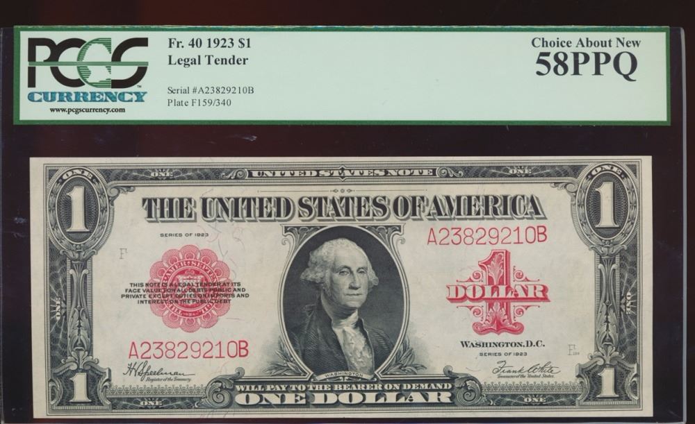 One 1923 $1 Legal Tender Note PCGS 58PPQ.