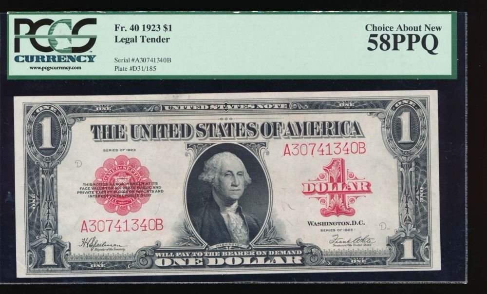One 1923 $1 Legal Tender Note PCGS 58PPQ.