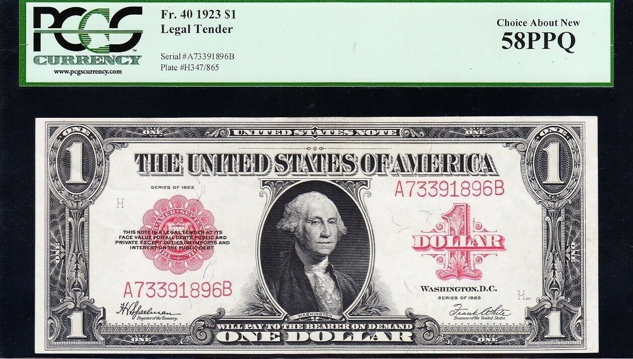 One 1923 $1 Legal Tender Note PCGS 58PPQ.