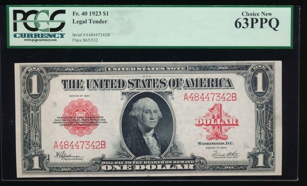 One 1923 $1 Legal Tender Note PCGS 63PPQ.