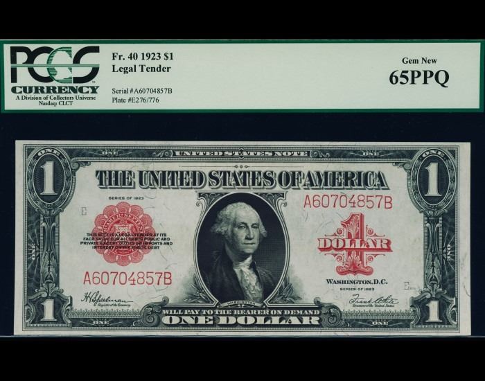 One 1923 $1 Legal Tender Note PCGS 65PPQ.