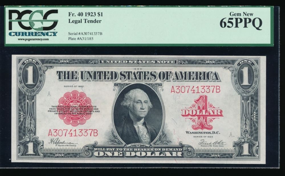 One 1923 $1 Legal Tender Note PCGS 65PPQ.