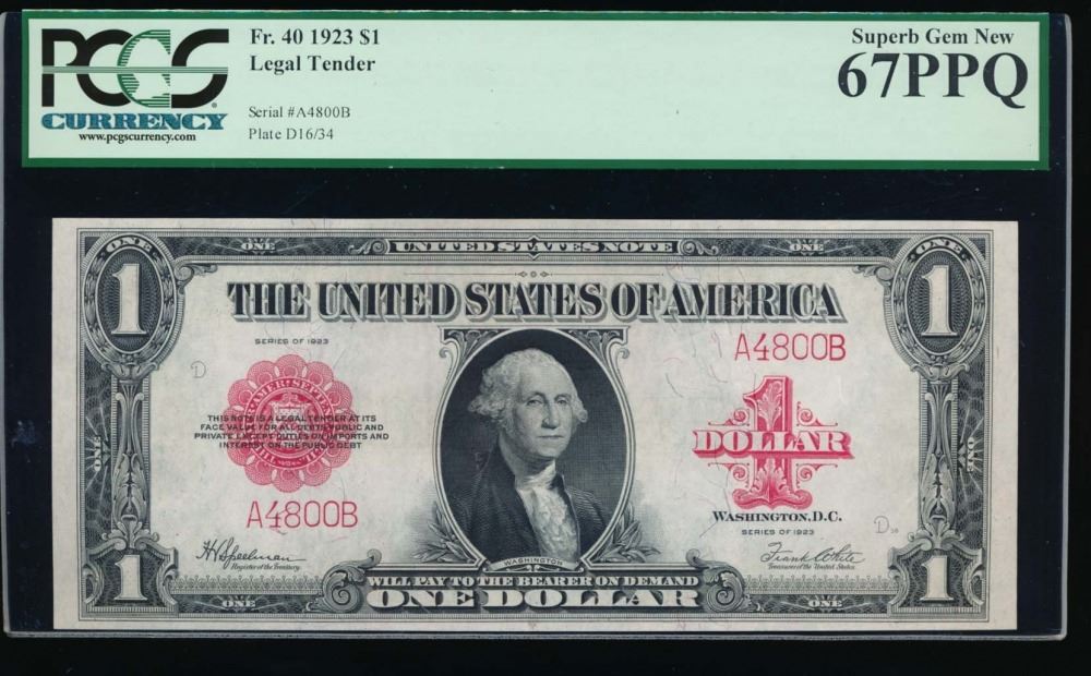 One 1923 $1 Legal Tender Note PCGS 67PPQ.