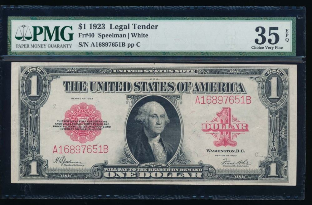 One 1923 $1 Legal Tender Note PMG 35EPQ.