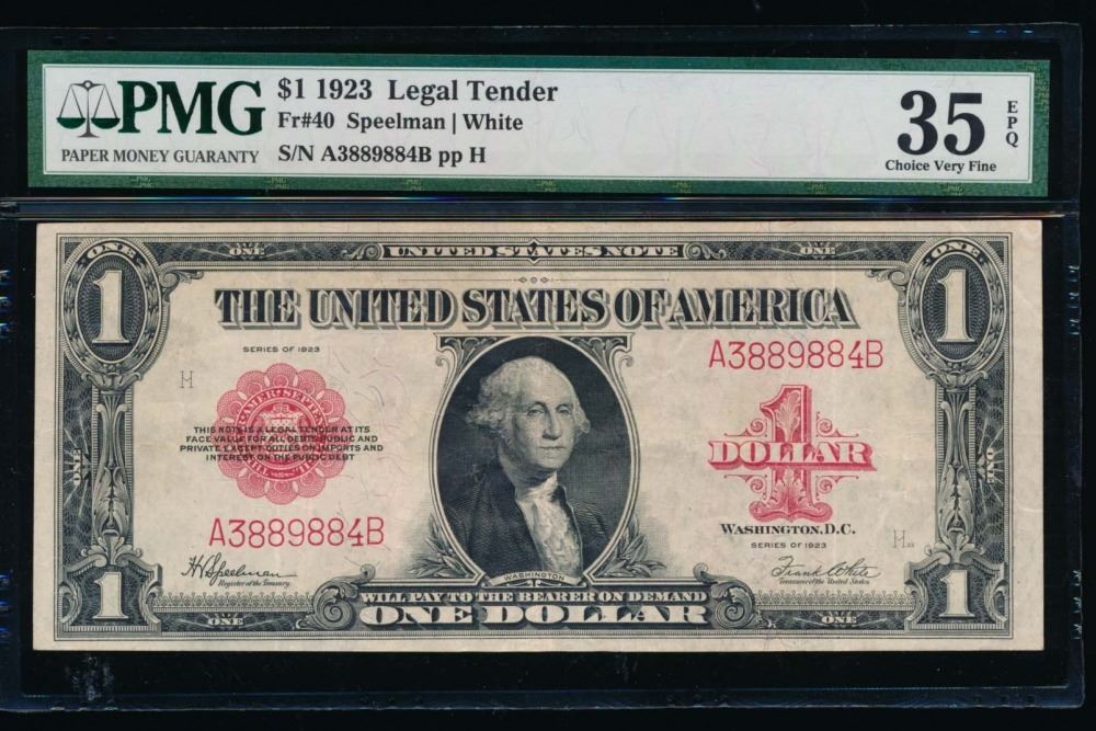 One 1923 $1 Legal Tender Note PMG 35EPQ.