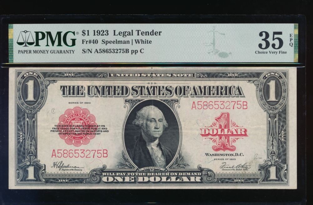 One 1923 $1 Legal Tender Note PMG 35EPQ.