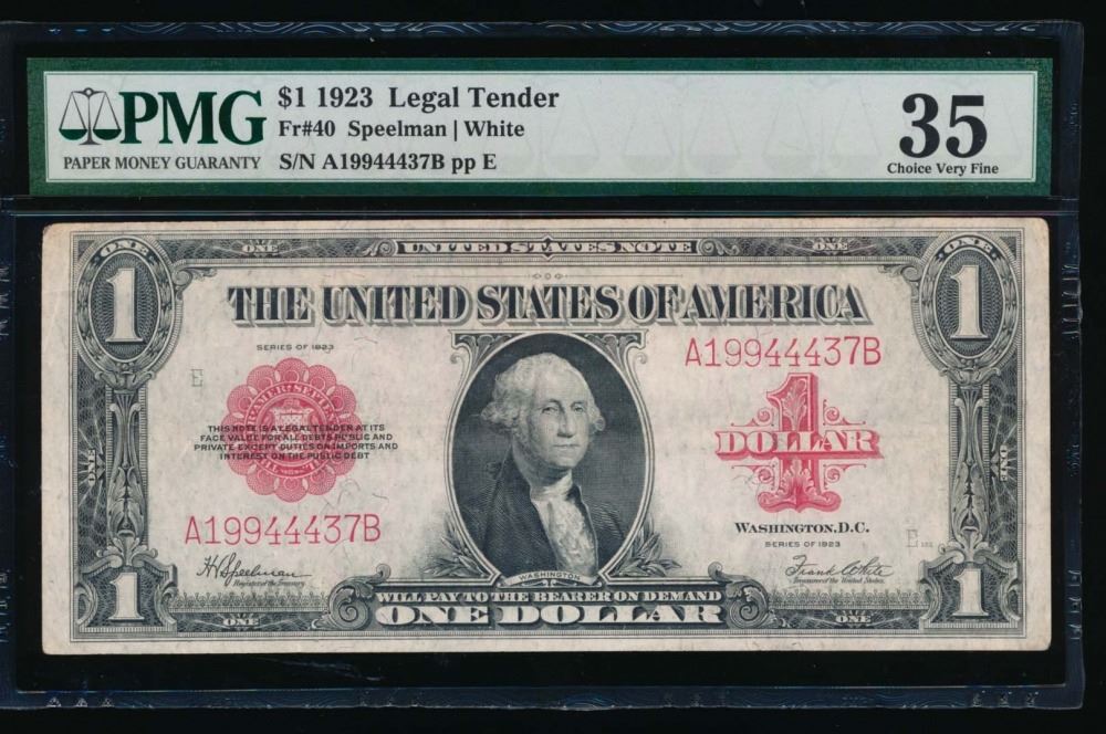 One 1923 $1 Legal Tender Note PMG 35.
