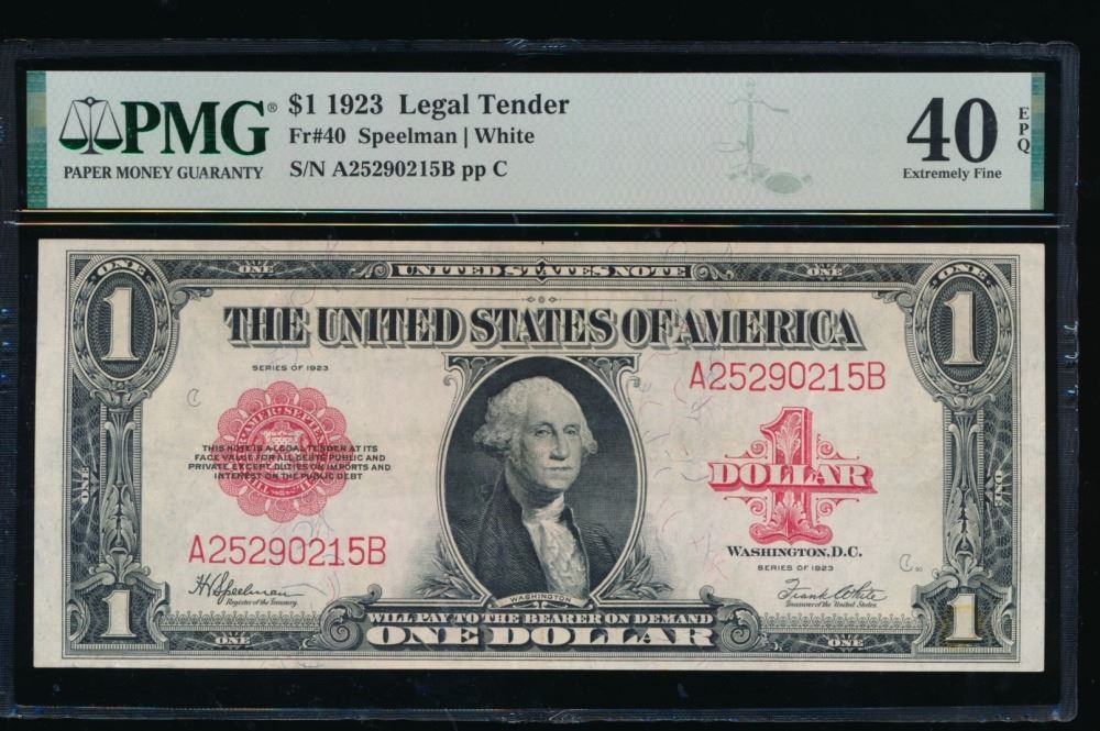 One 1923 $1 Legal Tender Note PMG 40EPQ.