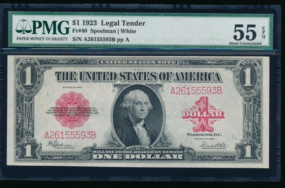One 1923 $1 Legal Tender Note PMG 55EPQ.