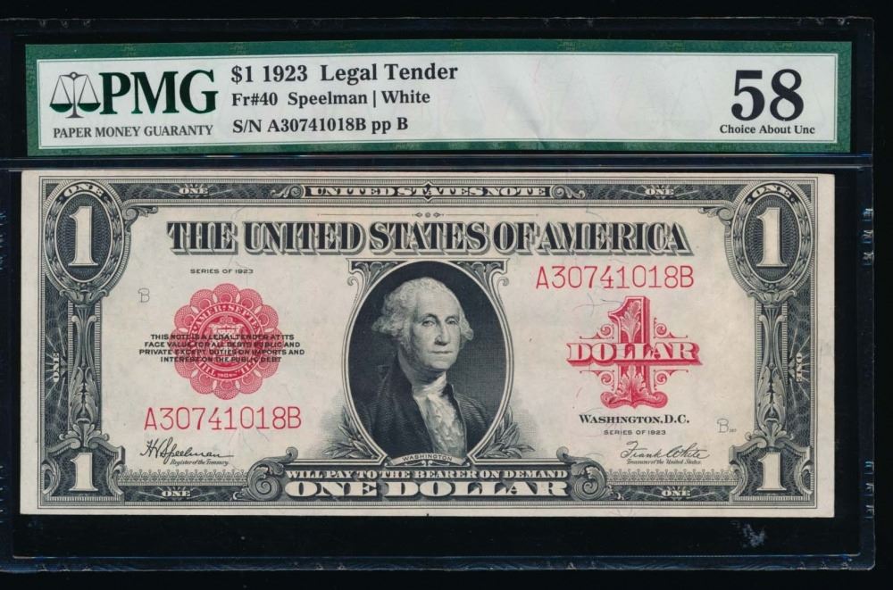 One 1923 $1 Legal Tender Note PMG 58.