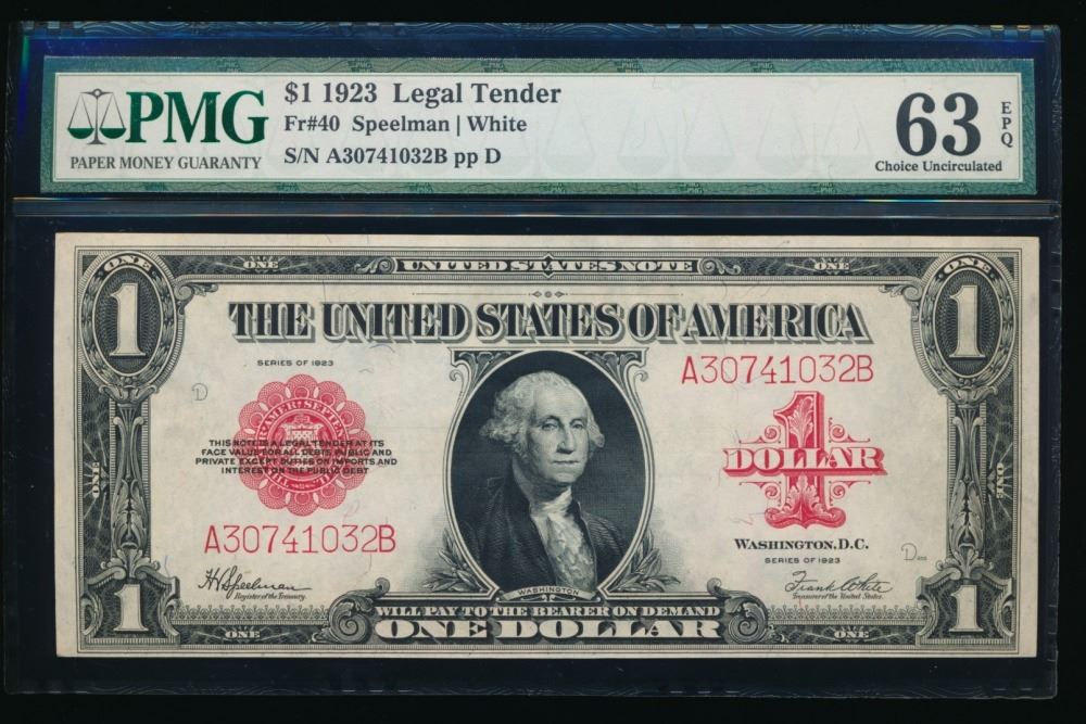 One 1923 $1 Legal Tender Note PMG 63EPQ.
