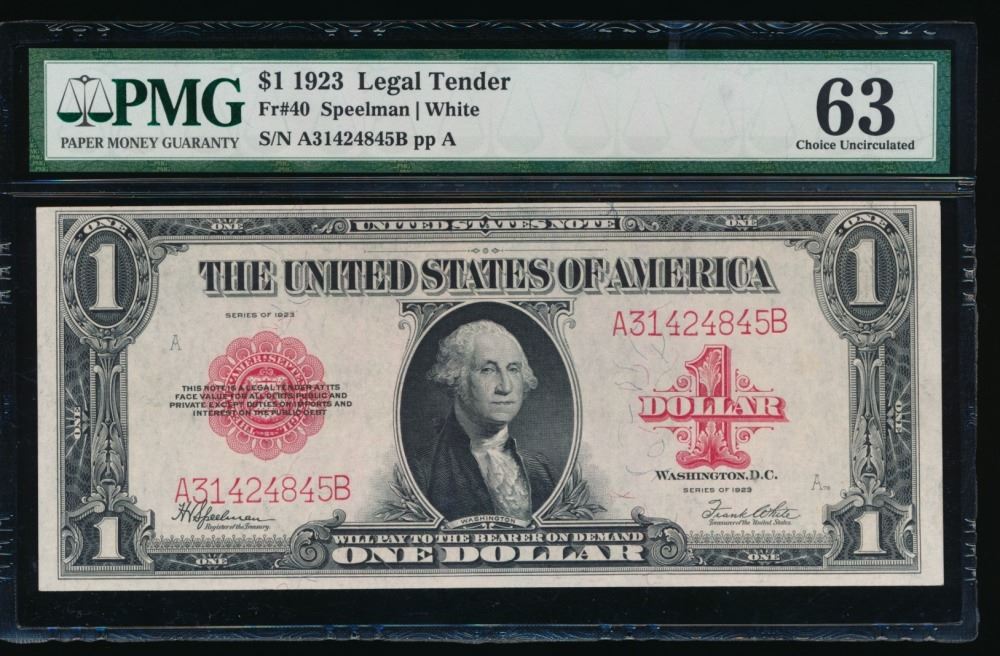 One 1923 $1 Legal Tender Note PMG 63.
