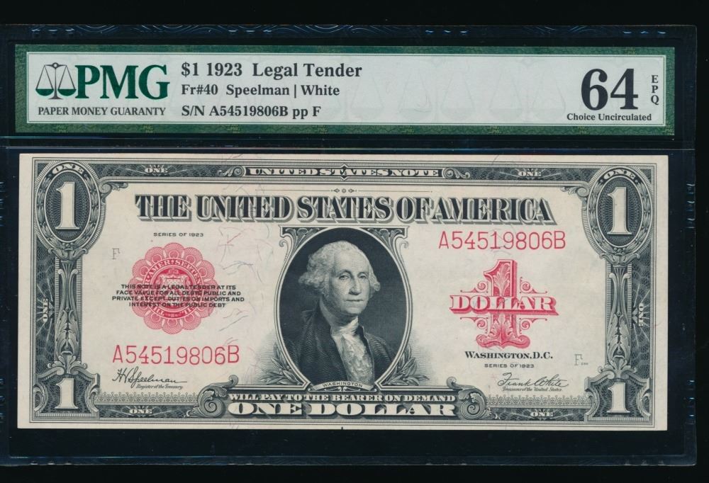 One 1923 $1 Legal Tender Note PMG 64EPQ.