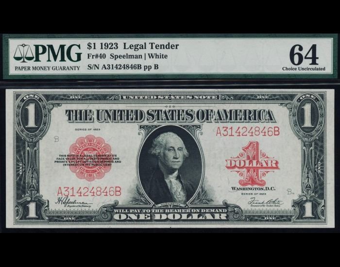 One 1923 $1 Legal Tender Note PMG 64.