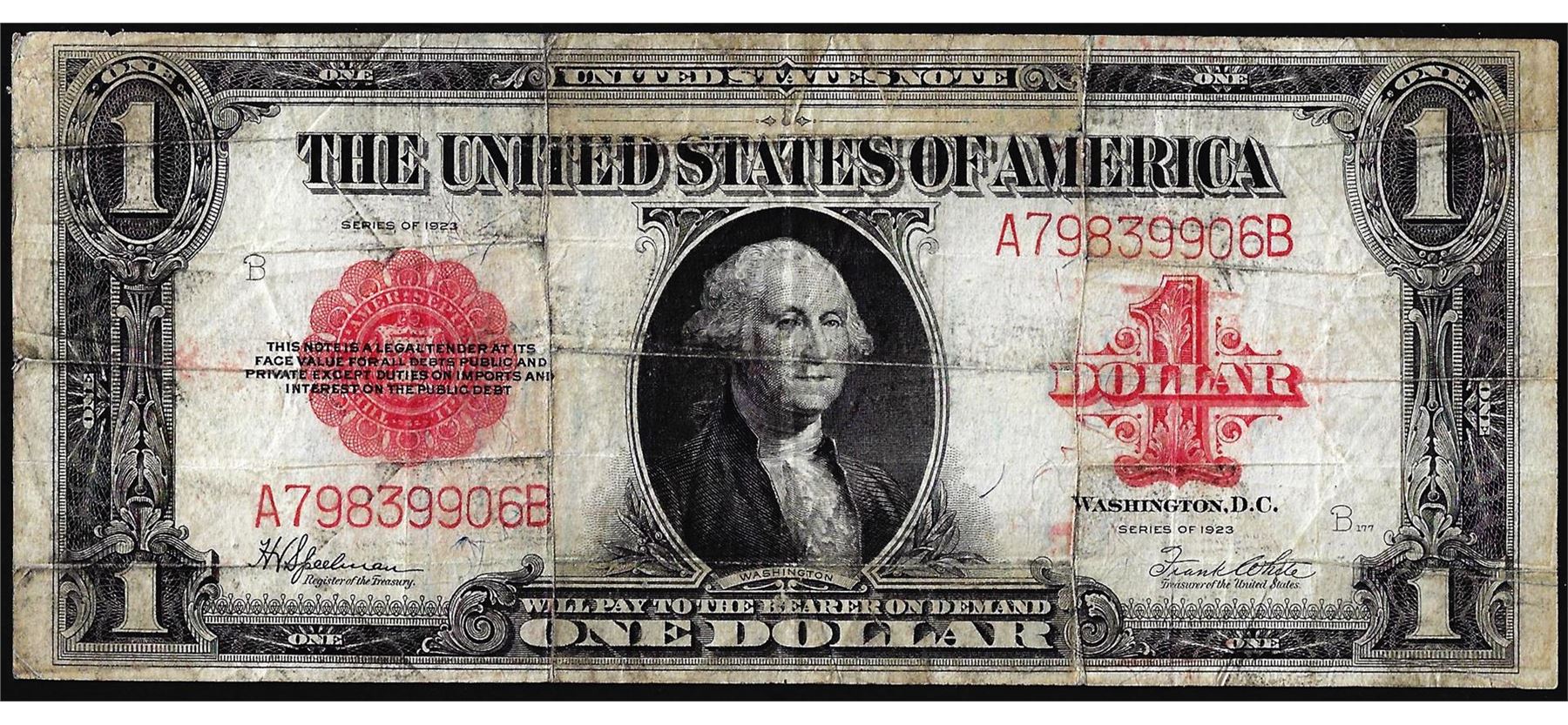 One 1923 $1 Legal Tender Note.