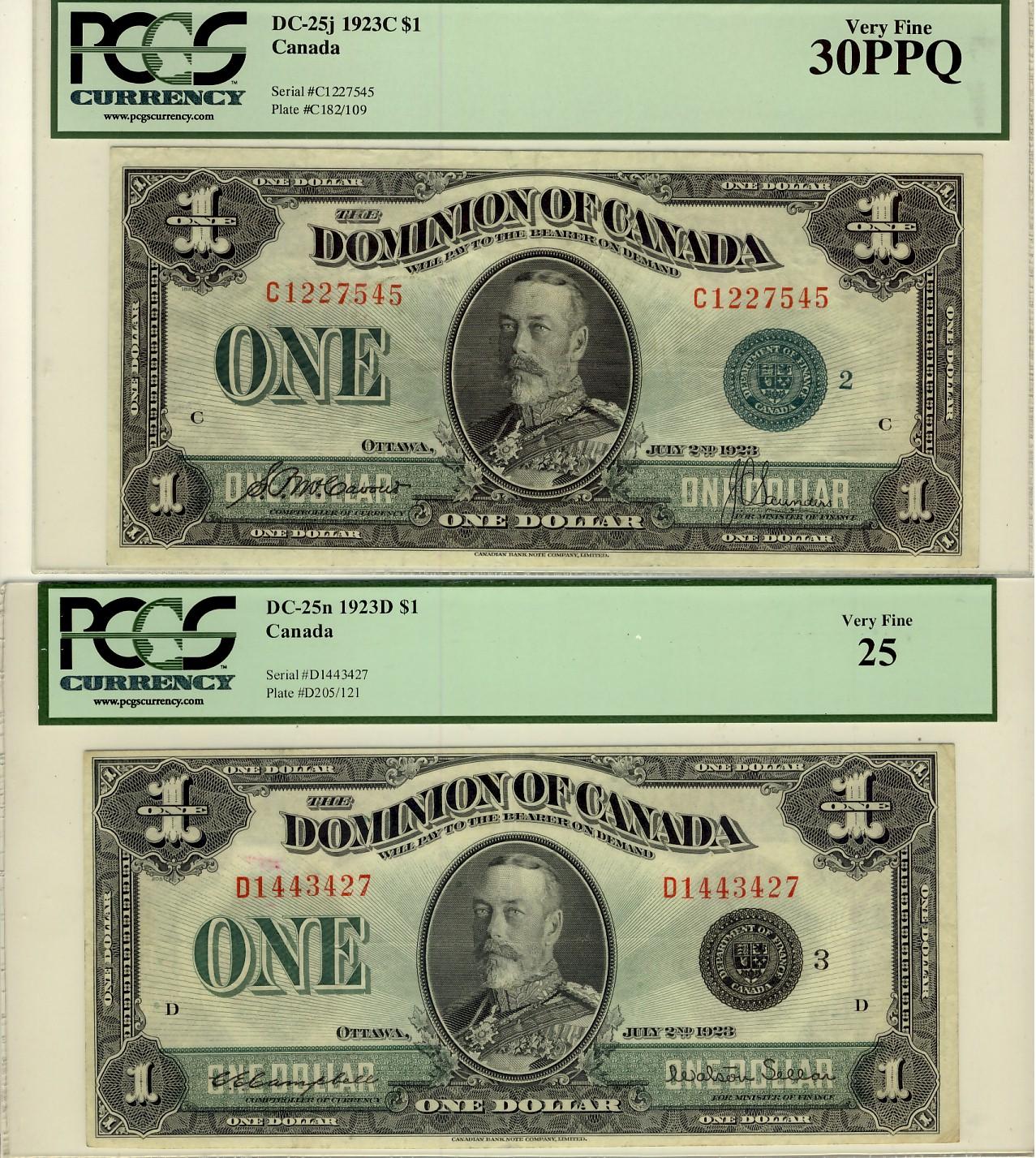 1923 $1 Lot including DC-25j C1227545 PCGS VF30PPQ and DC-25n  D1443427 PCGS VF25