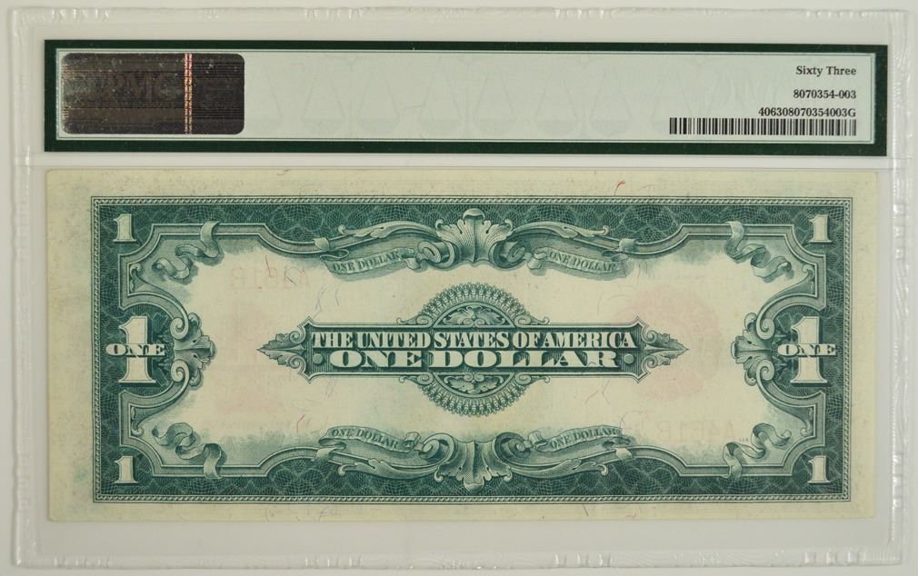 One 1923 $1 Low Serial Legal Tender PMG 63.